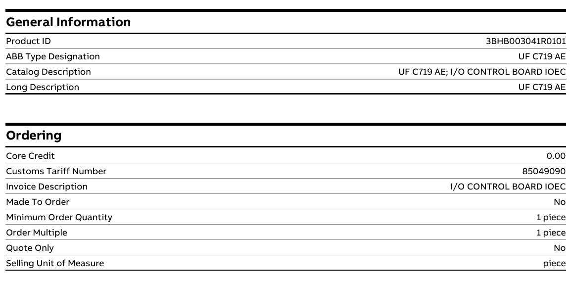 ABB 3BHB003041R0101 UFC719AE is a dedicated I/O control board designed and manufactured by ABB for its industrial automation and drive systems. According to the provided data table, this board card is not an independent modular I/O device that can be directly used on-site, but is integrated as a core functional component into a more complex Kit. The main function is to manage, process and coordinate digital or analog I/O signals within these suites, serving as a bridge connecting the main controller with external field devices. This I/O control board reflects ABB's pursuit in the power electronics and industrial control fields for high reliability, compact design, and system integration, aiming to provide stable and efficient underlying I/O support for ABB's drive and automation solutions.