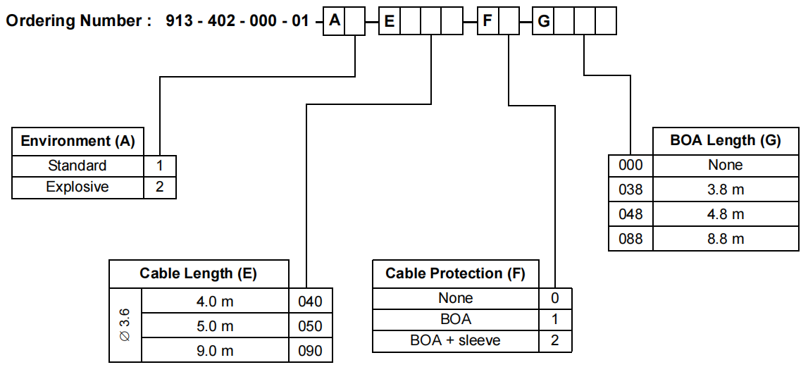 Model 913-402-000-013-A2-E090-F0-G000 is a 9.0-meter-long Intrinsically Safe extension cable. EA402 is specifically designed for condition monitoring systems that need to operate safely in high-risk explosive gas environments such as ATEX/IECEx Zone 0/1 or Class I Div 1. This cable adopts a special low-energy design concept and is marked with a prominent blue label, ensuring that even under internal or external fault conditions, the energy it releases is far lower than the minimum ignition energy required to ignite the surrounding explosive mixture, thereby providing the highest level of safety for personnel and equipment. The 9-meter length makes it suitable for complex industrial layouts where the distance between the probe and the preamplifier is relatively long.
