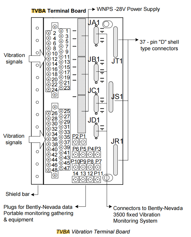 Excitation Power Supply For ICP/IEPE accelerometers, the terminal board or the accompanying VVIB module will provide +24V DC, 2-10mA constant current source excitation. For eddy current sensors, the excitation is usually provided by the preamplifier (Proximitor), and the TVBA board only receives its output signal.