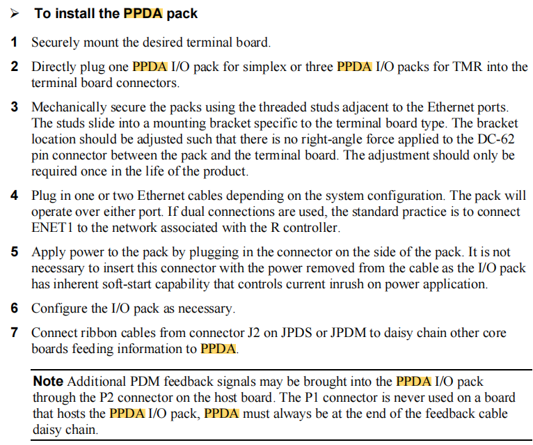 Mark VIe Local I/O Pack, Local I/O Package, the PPDA board is installed in this cabinet.
