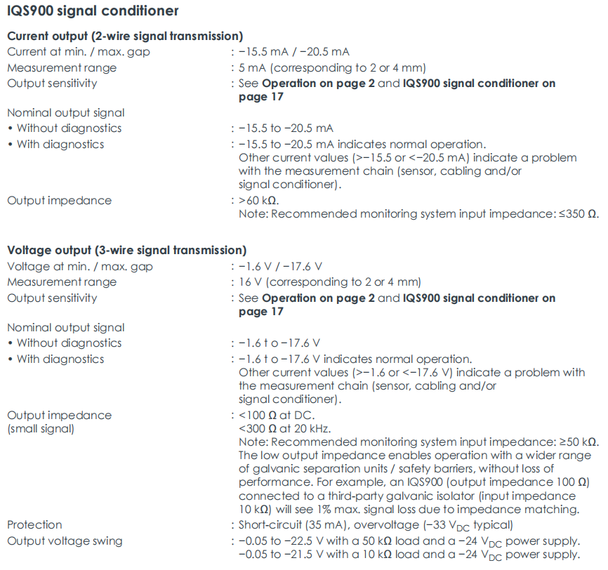 This system IQS900 204-900-000-011-A1-B31-C1-H10-I0 is specifically designed for monitoring the relative vibration of the shafts and the axial position/clearance of rotating machinery such as turbines, compressors, and pumps. IQS900 output signal simultaneously contains