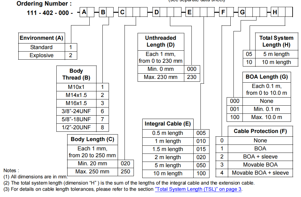 This specific order number indicates that this sensor not only has the high performance of the TQ402 series, but also has passed the strict intrinsic safety "Ex i" certification, and can be safely used in Zone 0, 1, 2 of environments with flammable and explosive gases such as petroleum, chemical industry, and natural gas. TQ402 configuration includes a 75mm housing length, a 5-meter integrated cable, and a flexible stainless steel hose with an FEP sheath for protection. TQ402 111-402-000-012 A1-B1-C075-D000-E050-F2-G050-H05 is a highly reliable and safe solution designed for demanding application scenarios.